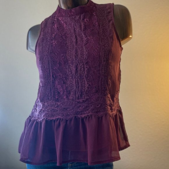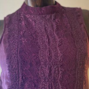 Gorgeous dark wine/purple sleeveless blouse with lace detail. Size Medium (NWOT)