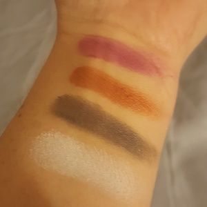 6 L.A. Colors, 2 Colormates, e.l.f., and Revlon vital radiance palettes. Only the e.l.f. and Revlon vital radiance shadows have been used. The others were only swatched. Sprayed with alcohol to sanitize. Smoke free and pet free home.