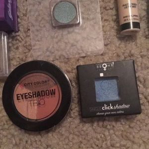 Includes everything shown. Everything is brand new. The city color eyeshadow trio does have a crack in the case, as shown in close up but has not been used. Too faced primer no longer available.