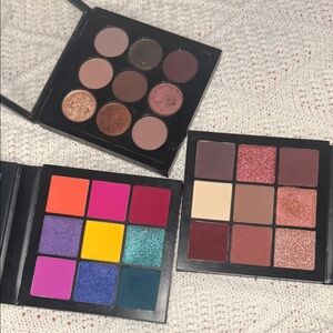 This bundle includes two Huda Beauty eyeshadow, palettes, and 1 Mac eyeshadow, palette, all been sanitized and clean with alcohol, not used just swatched.