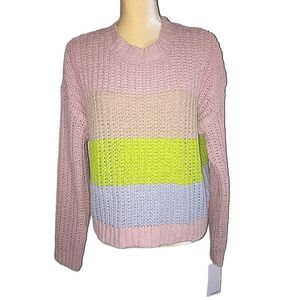 Eyeshadow Colorblock Chunky Knit Sweater Pink Green Blue Striped Size L