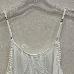 Chic camisole with eyelet trim accents. Features a ruffled hem and delicate straps. Ideal for layering or wearing alone.