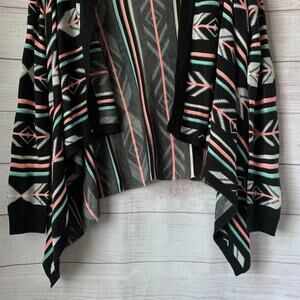 Eyeshadow Geometric Print Cardigan Sweater Open Front Asymmetrical Bottom Size S
