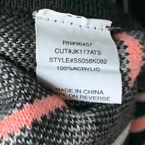 Size SMALL. It is made of 100% acrylic. Machine wash cold, lay flat to dry, cool iron.