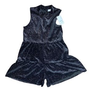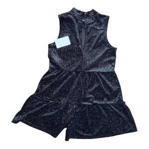 Eyeshadow Girls Black Velvet Sleeveless Layered Romper Dress Size Large 14 NWT