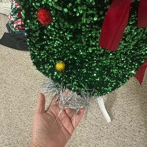 New without tag Sparkle in this stunning green sequin dress, perfect for holiday. Features charming red accents for a festive touch. The stitching at the bottom was broken where the white garland attaches. But not that obvious. Size XL