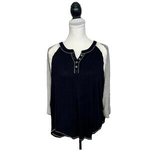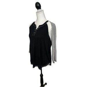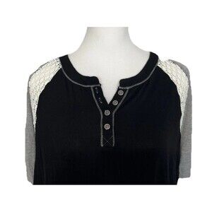 Eyeshadow Knit Top Shirt XL Black Long Sleeve Lace Insert High-Low Hem Buttons