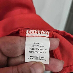 This bright blouse will add a pop of color to any outfit. Lace sleeves and keyhole neck are nice details. There is no stretch to the material.