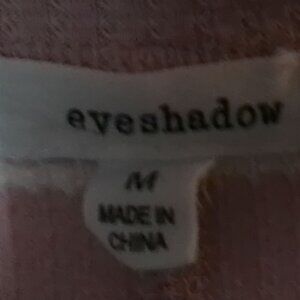 Eyeshadow waffle texture, scoop neck long sleeve tee. Pala pink with then white horizontal stripes. Features a single front pocket with vertical stripes.