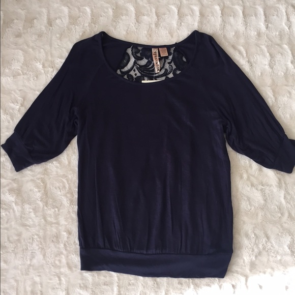 Very sexy navy top with lace back! It's marked size L but it would be pretty tight fitting. I would say it's probably more of a size M.