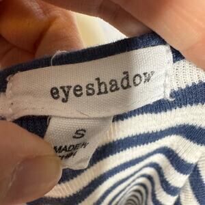 Eyeshadow Navy White Stripe Tie Front Tee Small Scallop Eyelet Sleeves