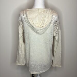 Eyeshadow Off White L/S Top With Hoodie & Lace Panels. Large