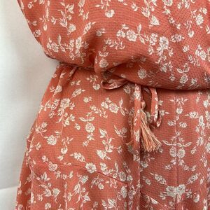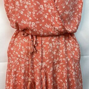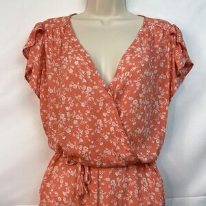 Eyeshadow Orange and Cream Floral wrap top romper Size Medium NWT
