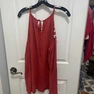 Eyeshadow Red Asymmetrical Ruffled Tank Top
