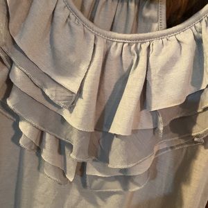 Light grey ruffle tank top Size small. NWT 65% polyester/35% rayon