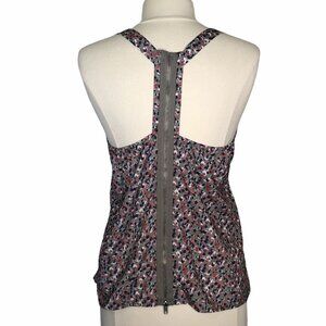 Elevate your wardrobe with this chic racerback tank, combining comfort and style. The vibrant floral print paired with a unique zipper detail adds a modern edge.