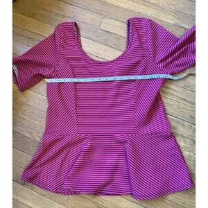 The Eyeshadow brand pink & black Striped Short Sleeve Peplum Top in Women's Size XL is a stylish and trendy addition to any woman's wardrobe.