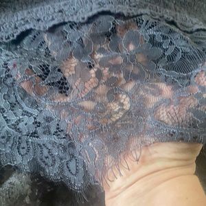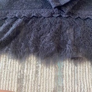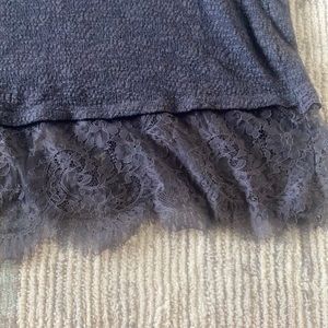 Gray Eyeshadow Sweater with lace & eyeshadow lace all around bottom. Sweater is on the thin side. Lace is in excellent condition with no tears. Gently used & in good condition. Oversized.