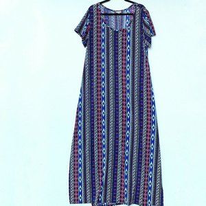 Eyeshadow Women Blouse 18/20 W Long Tunic Short Sleeve Round Neck Blue Pink
