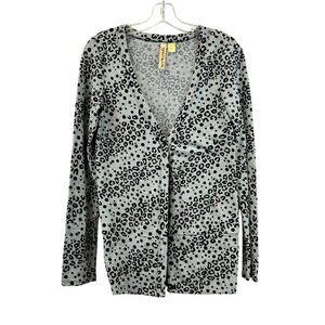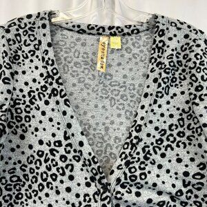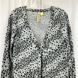 Eyeshadow Womens Cheetah Print Cardigan V-Neck Button Up Gray/Black Size Medium
