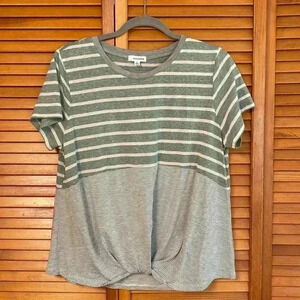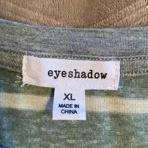 Eyeshadow Women’s Short Sleeve Shirt in Size XL. Green, Gray & Cream. Very soft fabric in excellent condition. Cute tie detail on the front.