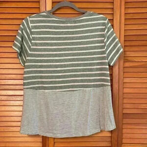 Eyeshadow Women’s Short Sleeve Shirt in Size XL. Green, Gray & Cream.