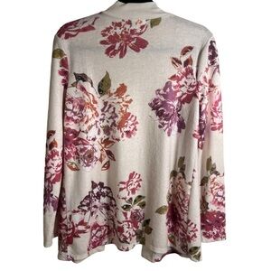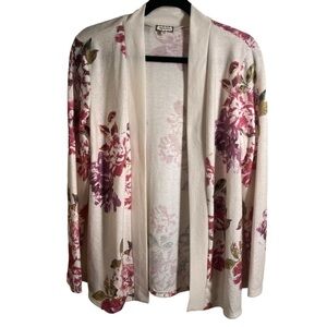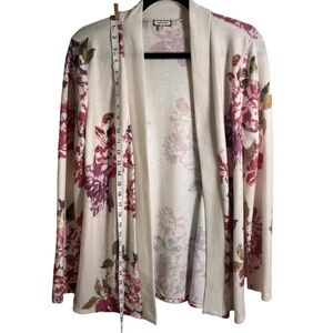 Eyeshadow long sleeve ivory cardigan with pink and purple flowers. Super soft and lightweight. EUC.