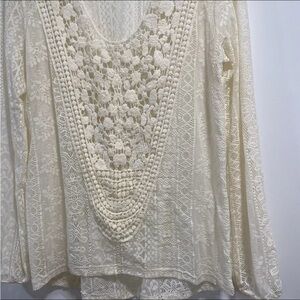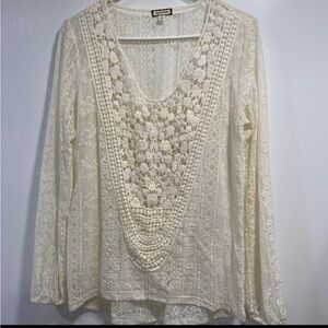 Eyeshadow top shirt blouse Cream crochet lace long sleeve Sz L Very Open V Neck