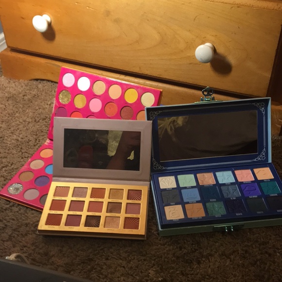 Nudes eyeshadow jeffree start blue blood eyeshadow and Beauty treats eyeshadow I have the Nudes one time and the beauty treats once the jeffree star is brand new