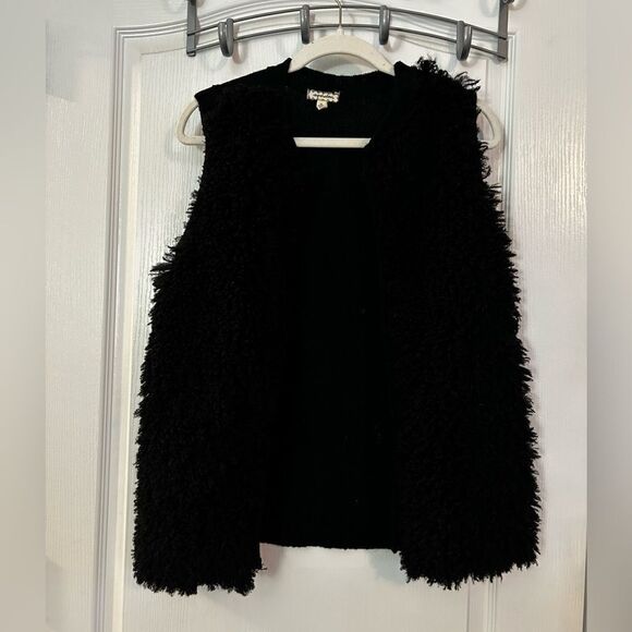 Eyeshadow soft vest Women L Faux Fur Black Open Front Sleeveless whimsigoth cozy