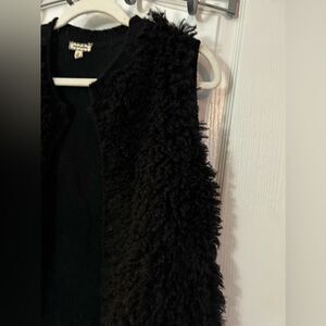 Eyeshadow Womens Sweater Vest Small Faux Fur Panels Black Open Front