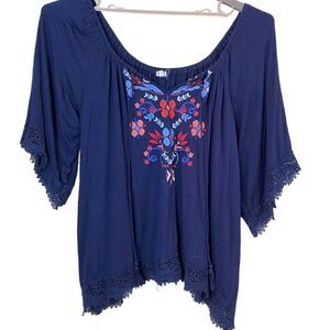 Eyeshawdow Boho Prairie Blue Embroidered Blouse Size 1X
