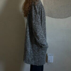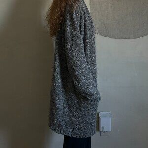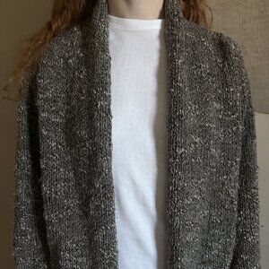 Just dry cleaned, great condition overall although you can tell it has been worn. Beautiful warm and cool toned yak yarn intertwined. So cozy. Perfect for yoga, meditation, around the house, comfy days out, etc.