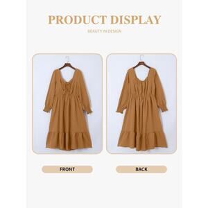 This plus-size women's dress is made from soft, comfortable, and skin-friendly fabric—ideal for fall, winter, and spring. It features a sweetheart neckline, long sleeves, a square back, pleats, drawstring, ruffles, pockets, and a flowing maxi length. Easy to style with accessories for a chic summer look, it's perfect for various occasions like casual outings, weddings, work, or vacations.