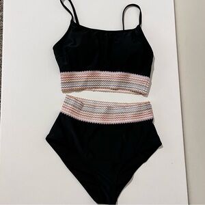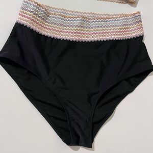 Eytino Women’s High-Waist Bikini Set Small Black Rainbow Lettuce Hem Girly NWOT
