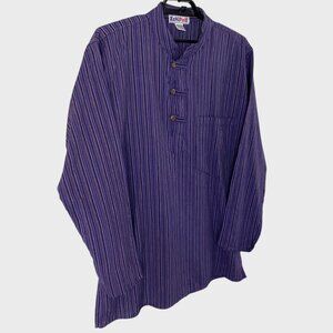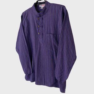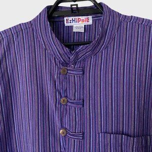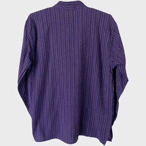 EzHippie Retro Striped Grandad Collared Shirt Purple Men's Size XXL 100% Cotton