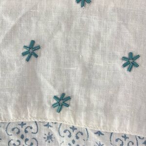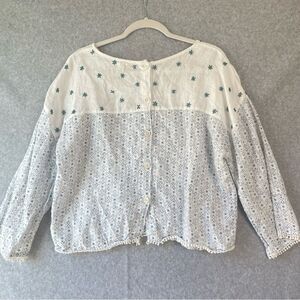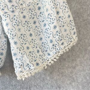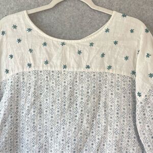 Eze Sur Mer Linen Boho Beaded Boxy Floral Pullover Top Med. #AO