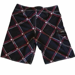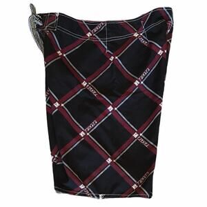 Ezekiel Board Shorts Black & Red Check Pattern 33”