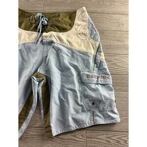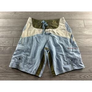Ezekiel Men Swimwear 32 Blue/White/Green Colorblock Cargo Pockets Drawstring