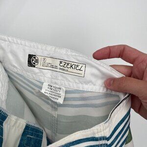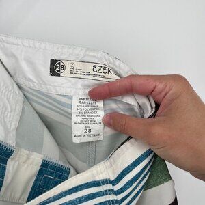 Ezekiel Mens Board Shorts Swim Trunks Size 28 Pocket Striped Blue Green White