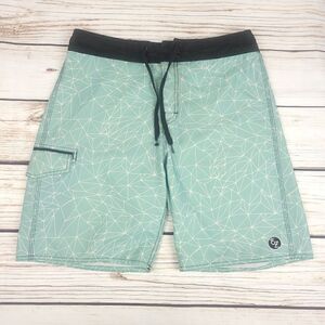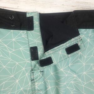 Ezekiel class A bue swim pants in good preowned condition. Had a faint stain (shown in picture) and missing a seam end on bottom front (shown in picture).