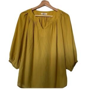 Ezra Boho Mustard Color 3/4 Sleeve Blouse Top Size Large
