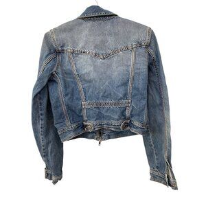 Ezra Fitch Full Zip Cropped Denim Jacket Size Large Medium Wash Retro Old School