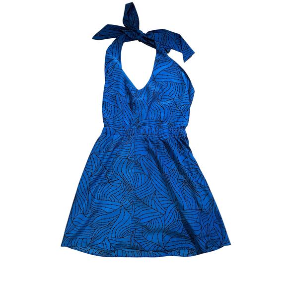 Ezra Womens Halter Neck Mini A Line Dress Blue Sz Medium Y2k Retro Boho Festival