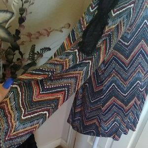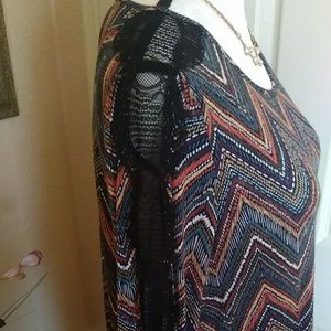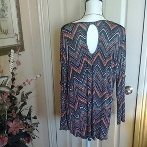 EUC.... cute multicolor long sleeve top with peekaboo back and Lace shoulder detail light enough for your spring and summer wardrobe