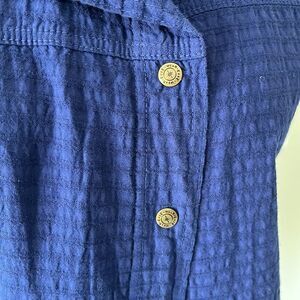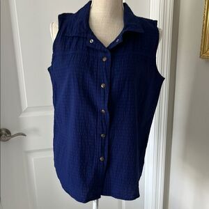 Ezzewear Wear Blue Relaxed Snap Button Down Shirt Textured Sleeveless Canada NWT