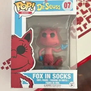 Charming Fox in Socks figure from Dr. Seuss. Bright red body with blue gloves. Perfect for collectors. Brand new in box.