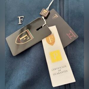 “F Collections" Jacket Size Small Blue Suede Zippered Front Long Sleeve Hooded