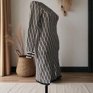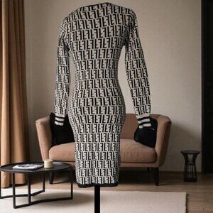 F INSPIRED (SM) Tan with Brown Crew Neck Long Sleeve Sweater Dress