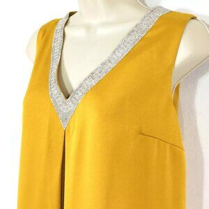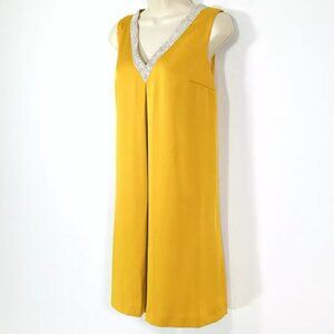 F & P Paris Marigold Satin Bejeweled Dress Sz M Open Flowing Back Panels